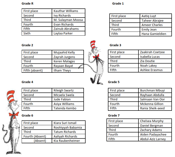 The Top 3 classes are: First place: Mrs Roman (Miss Green), Second: Miss Bester, Third: Mrs Thomas. WELL DONE to every teacher and child. All 3 classes have won a special prize.